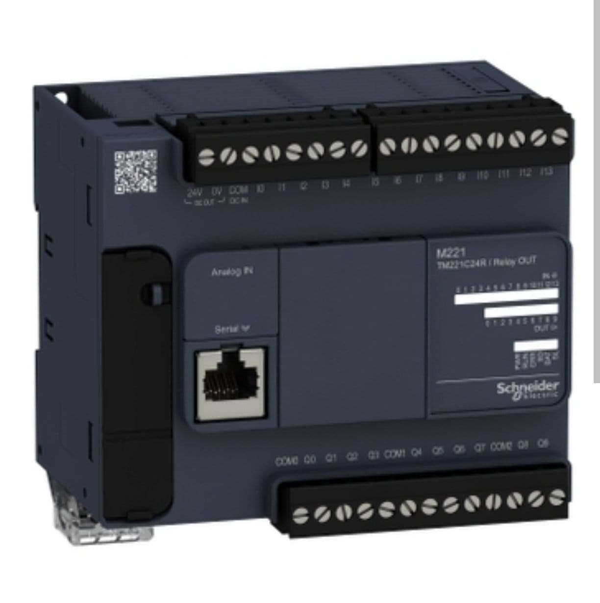 Automate programmable Schneider Electric TM221C24R – 24 E/S (14 entrées TOR + 10 sorties relais), alimentation 24 VDC, port Ethernet intégré et communication série. Idéal pour l’automatisation de machines industrielles, panneaux électriques et process.